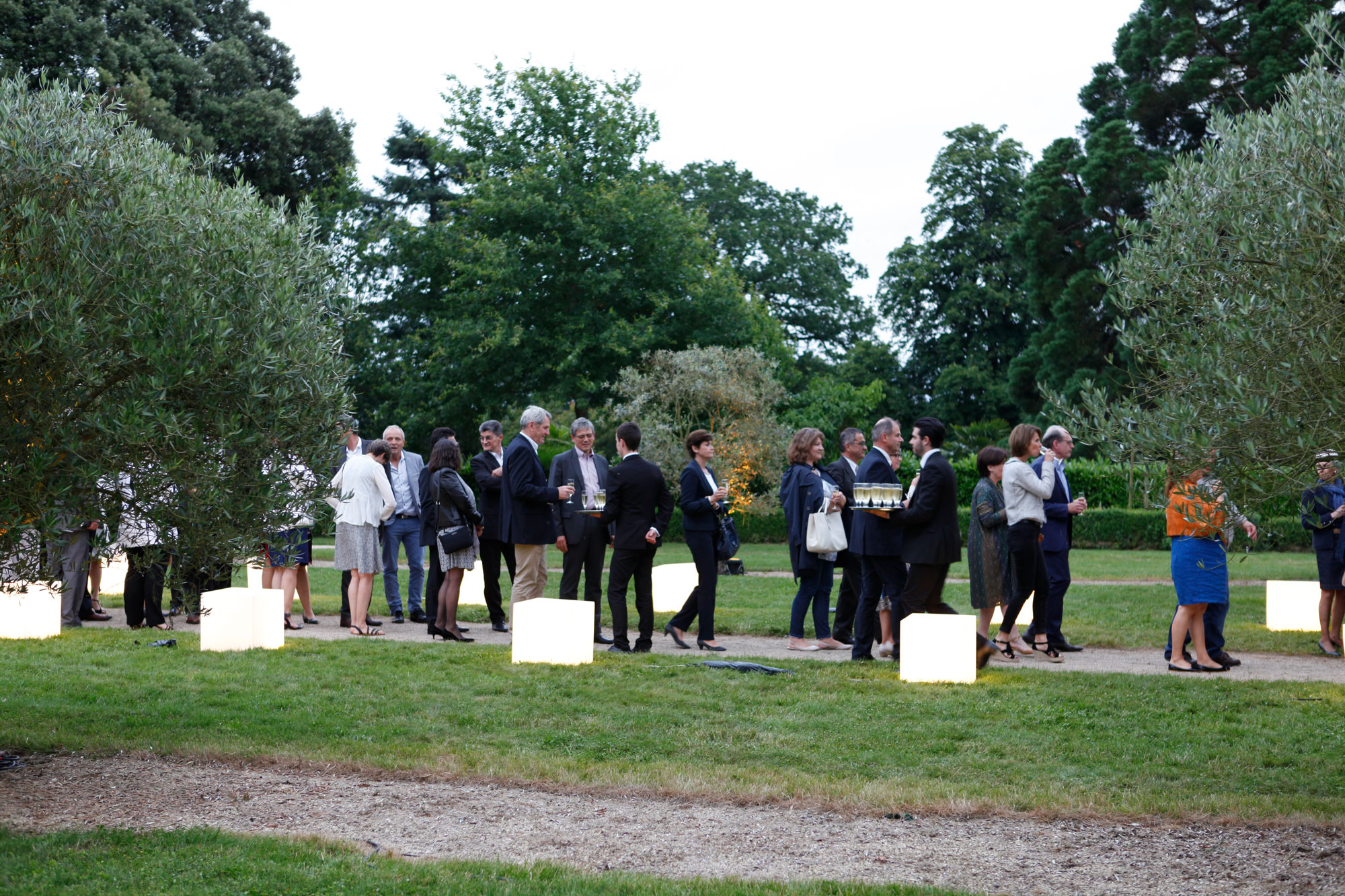 — Scénographie des différents espaces : scène, des espaces de réception, salons et éclairages dans les jardins…
