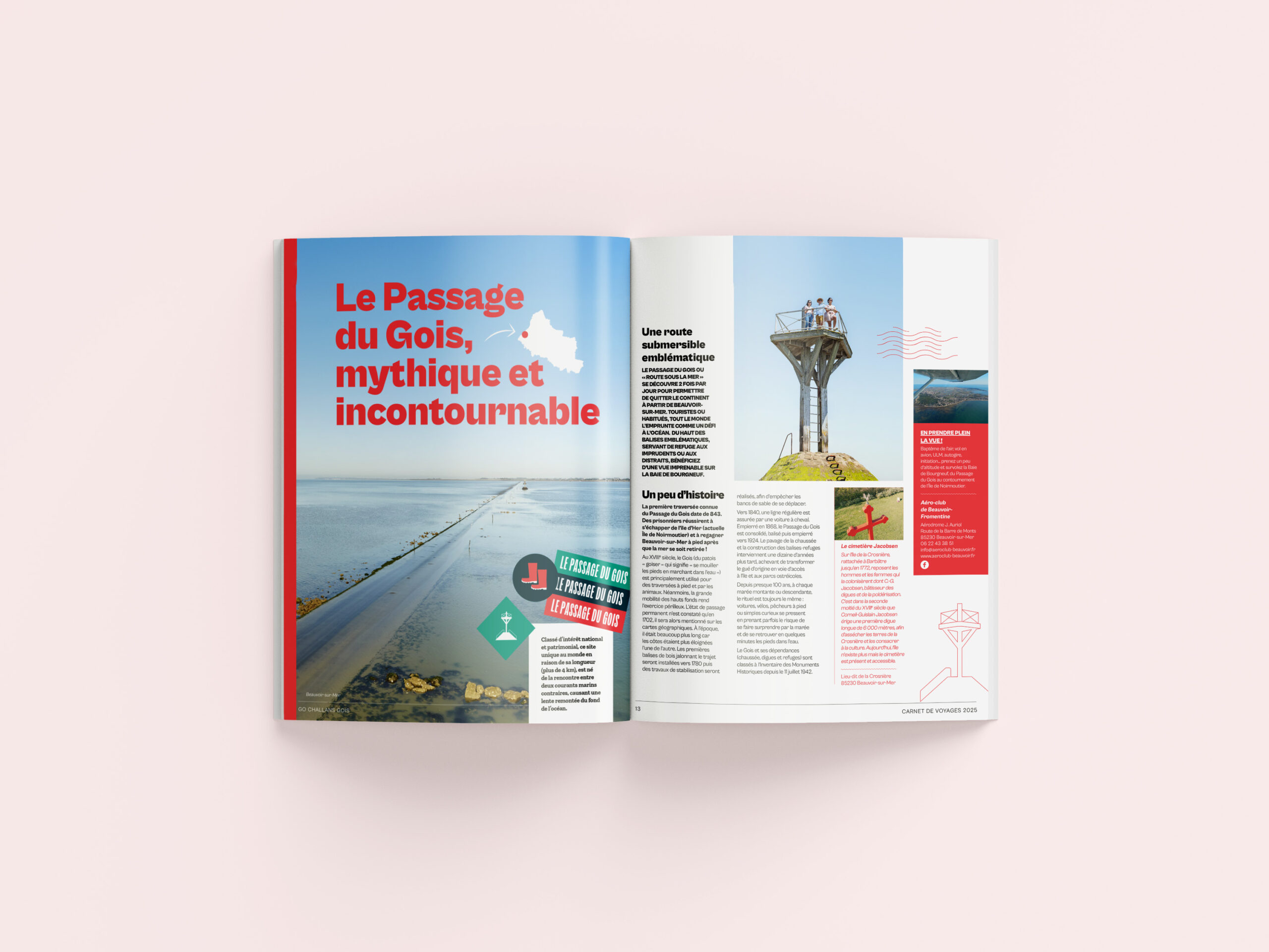 En 2025, les équipes de GO Challans GOis ont fait confiance à Anima pour la refonte graphique de ce magazine. Anima a proposé de valoriser « les destinations dans la destination » (le Passage du Gois, la Baie de Bourgneuf, le Marais Breton Vendéen, la Sallertaine et Challans) grâce à un système de stickers illustrés déclinables en goodies pouvant être distribués dans les Offices de tourisme et chez les commerçants. Le magazine se dote ainsi d’une nouvelle identité colorée laissant la part belle à l’iconographie et à l’humain.