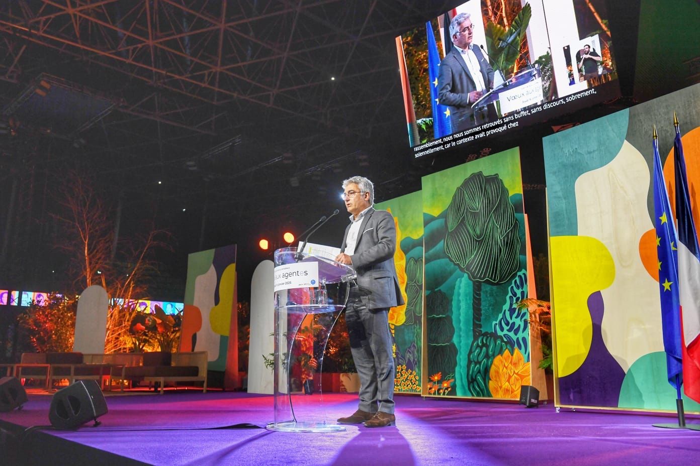 Pour la deuxième année consécutive, Anima a repensé l’espace de la H Arena pour installer une scène centrale scénographiée en collaboration avec le service Nature et Jardin de la Ville de Nantes.
