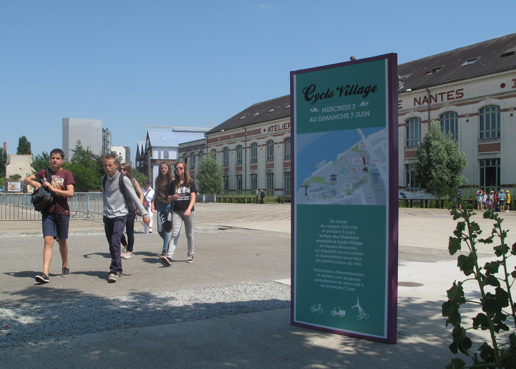 La demande de Nantes Métropole consiste en l’organisation, la coordination et la scénographie de deux temps forts : le Cyclotour et le Cyclo Village.