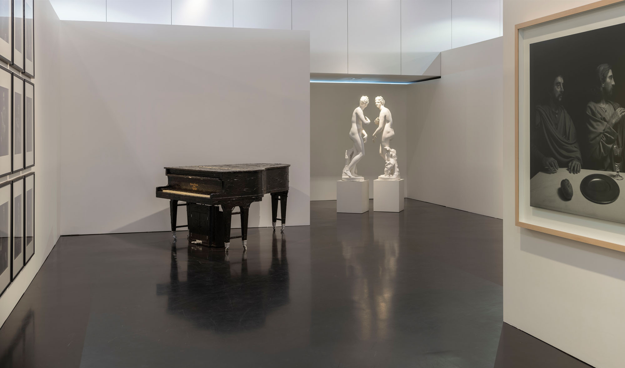 Parmi les nombreuses œuvres exposées : celle de Jeff Koons, Bourgeois Bust – Jeff and Ilona, un autoportrait en marbre de l’artiste avec sa muse la Cicciolina, ou le Coup de tête de Adel Abdessemed, monumental bronze de plus de 5 mètres de haut représentant le célèbre coup de boule de Zidane sur Materazzi.