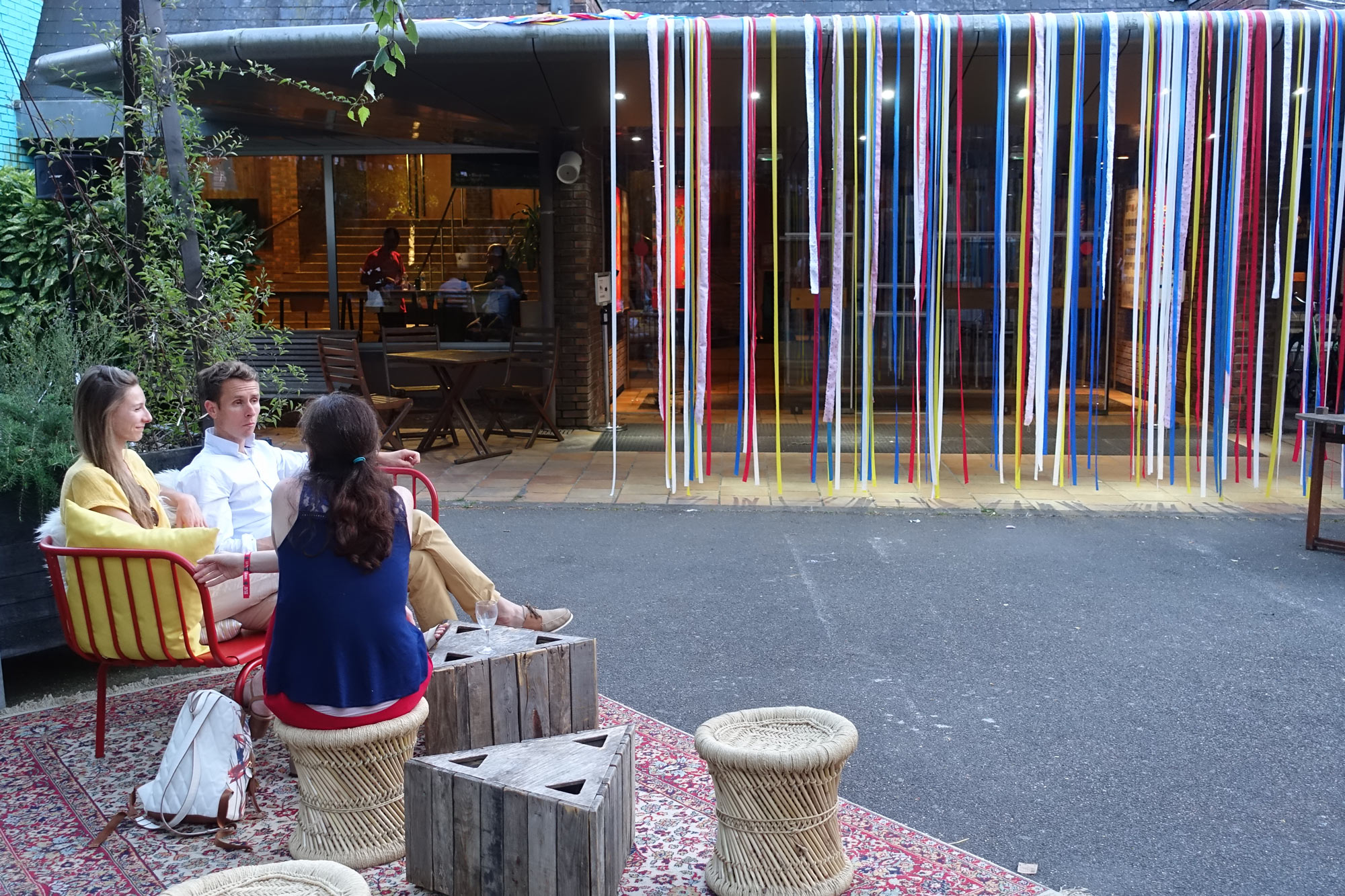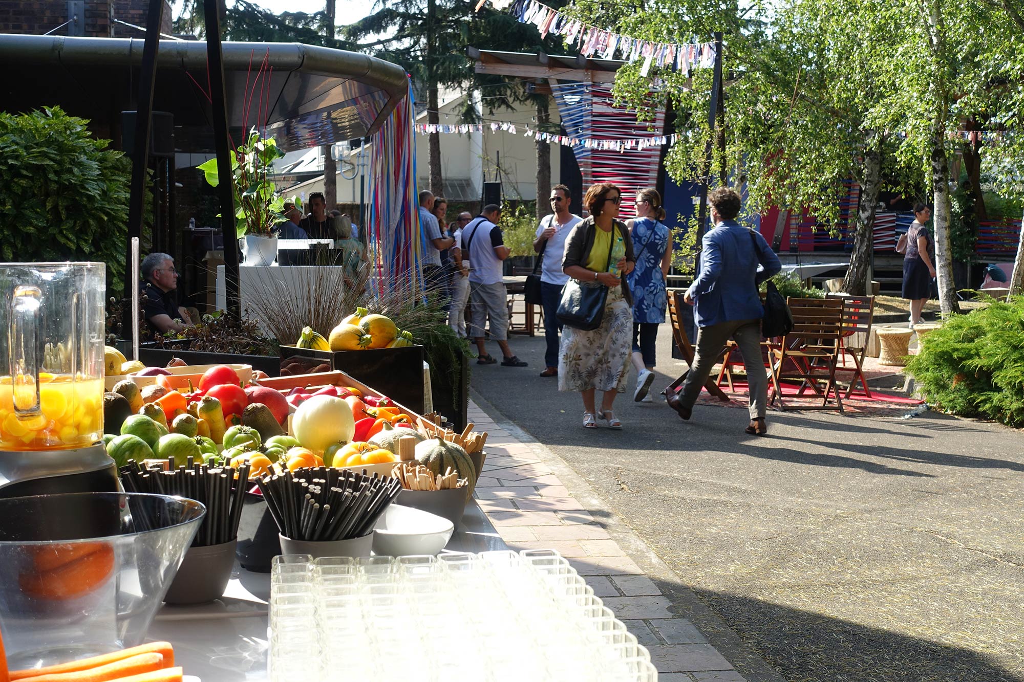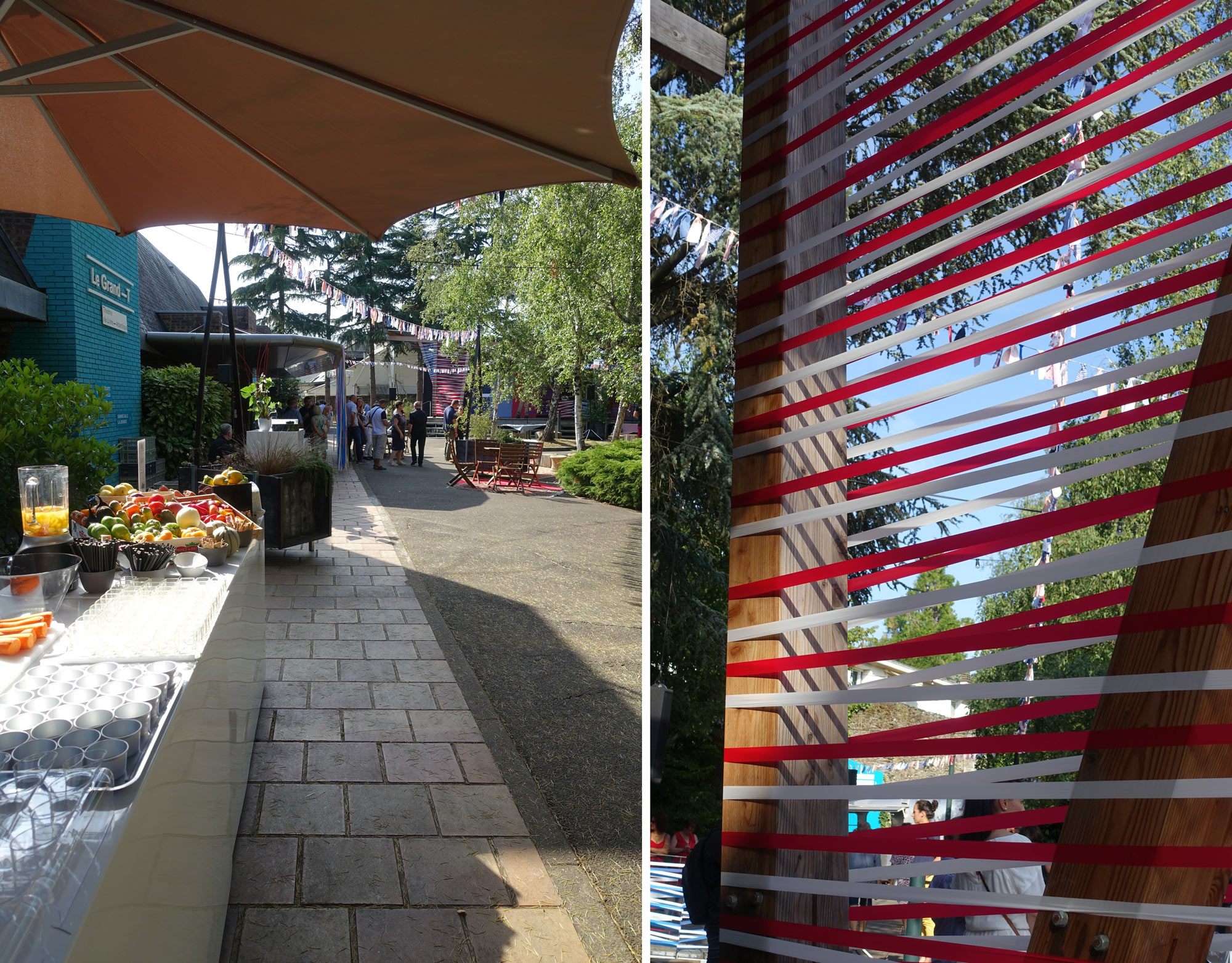 Respectant l’esprit du lieu de cette édition, Le Grand T, liant la « culture » et la « nature », Anima a créé une décoration « festivalière de plein air faite main ». L’invitation et le nom de cet événement étant très « républicains », il a été proposé de garder les codes couleurs du drapeau français mais en les réinterprétant avec des patchworks et des guirlandes de tissus unis et à différents motifs (pois, rayures, petites fleurs…), en favorisant au maximum des tissus et autres matériaux récupérés d’événements précédents faits pour le département, dans un souci de respect de l’environnement.