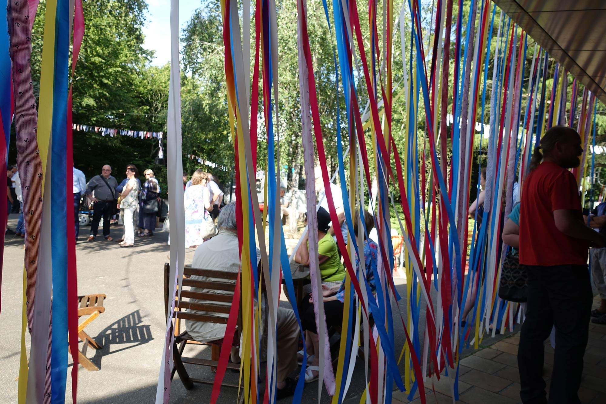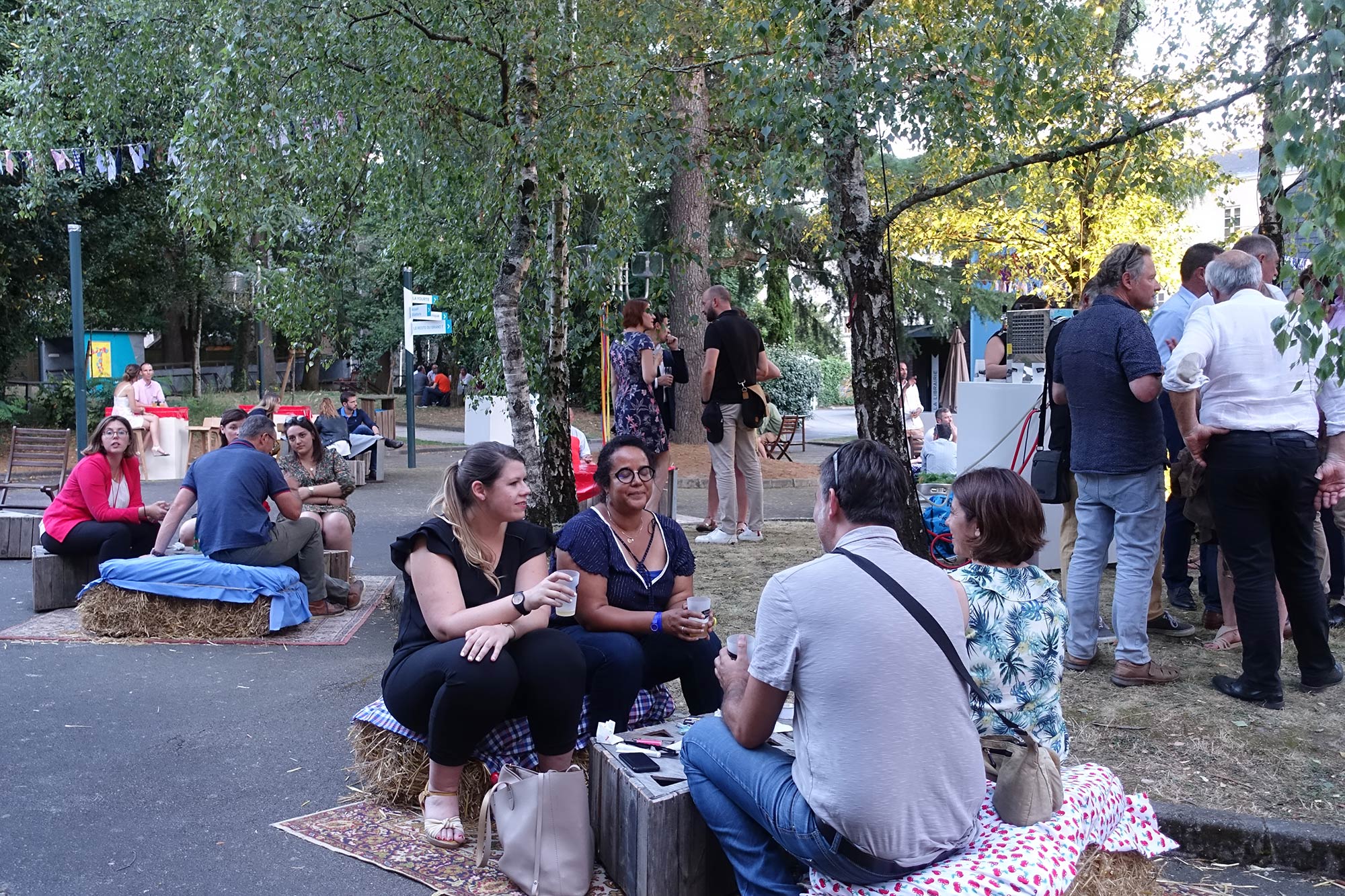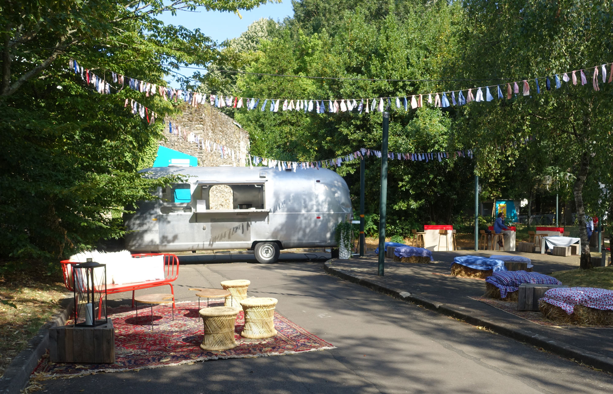 Respectant l’esprit du lieu de cette édition, Le Grand T, liant la « culture » et la « nature », Anima a créé une décoration « festivalière de plein air faite main ». L’invitation et le nom de cet événement étant très « républicains », il a été proposé de garder les codes couleurs du drapeau français mais en les réinterprétant avec des patchworks et des guirlandes de tissus unis et à différents motifs (pois, rayures, petites fleurs…), en favorisant au maximum des tissus et autres matériaux récupérés d’événements précédents faits pour le département, dans un souci de respect de l’environnement.