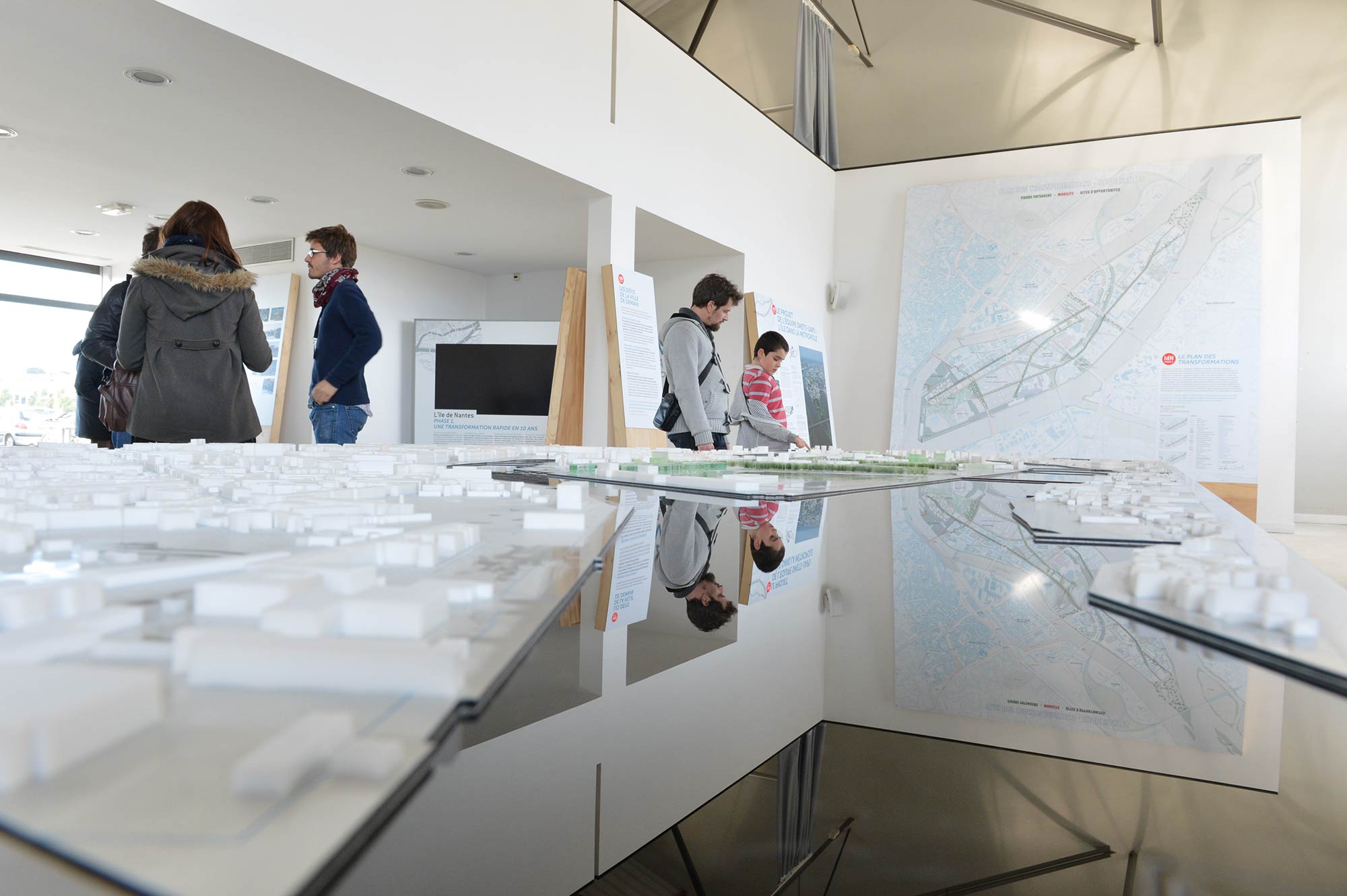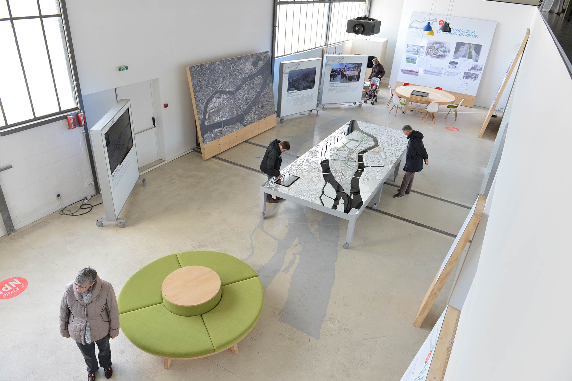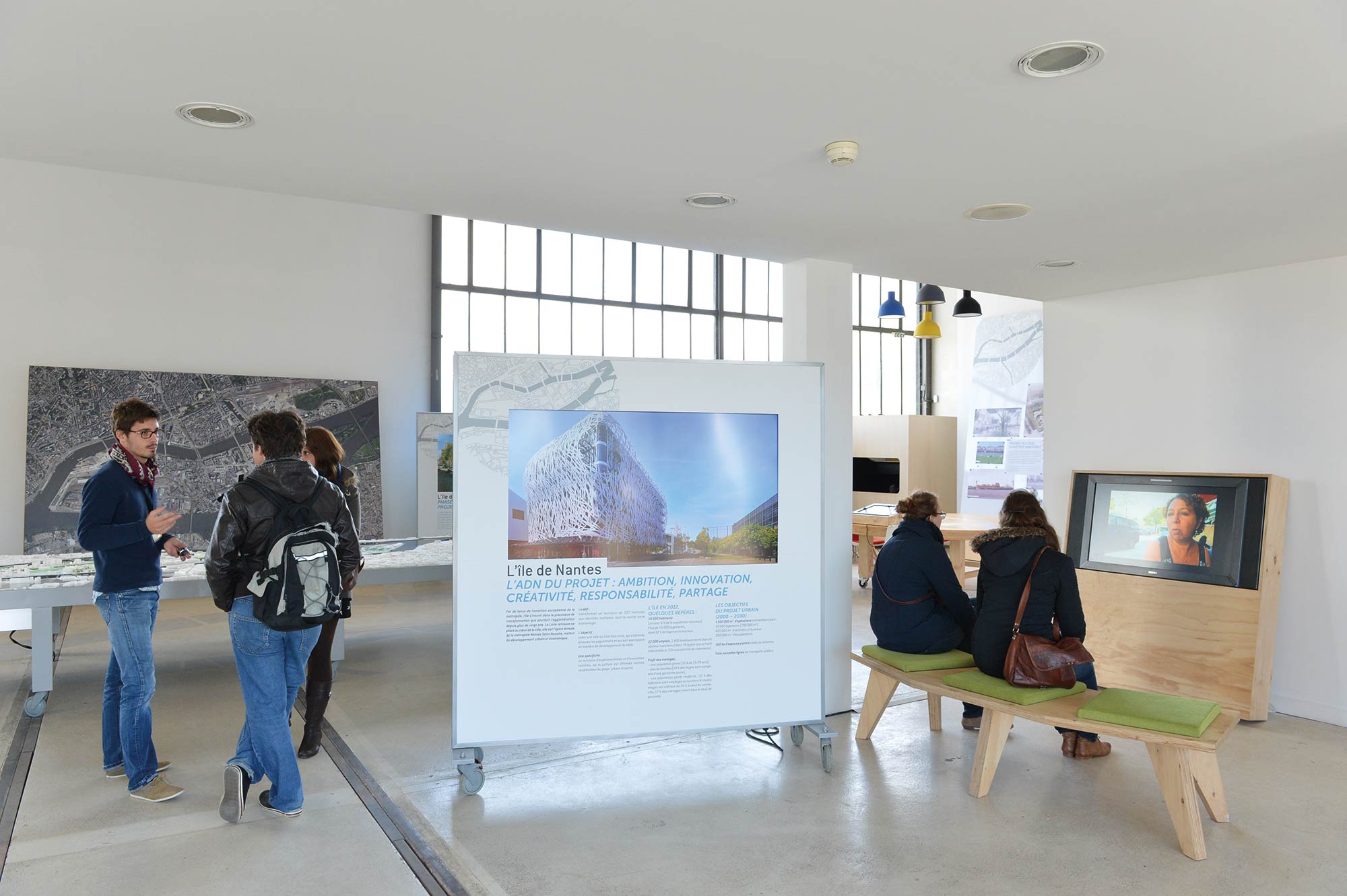 Projet réalisé en collaboration avec MG Design (cartes interactives) et Maquette Bertho (maquette volume de l’île de Nantes).