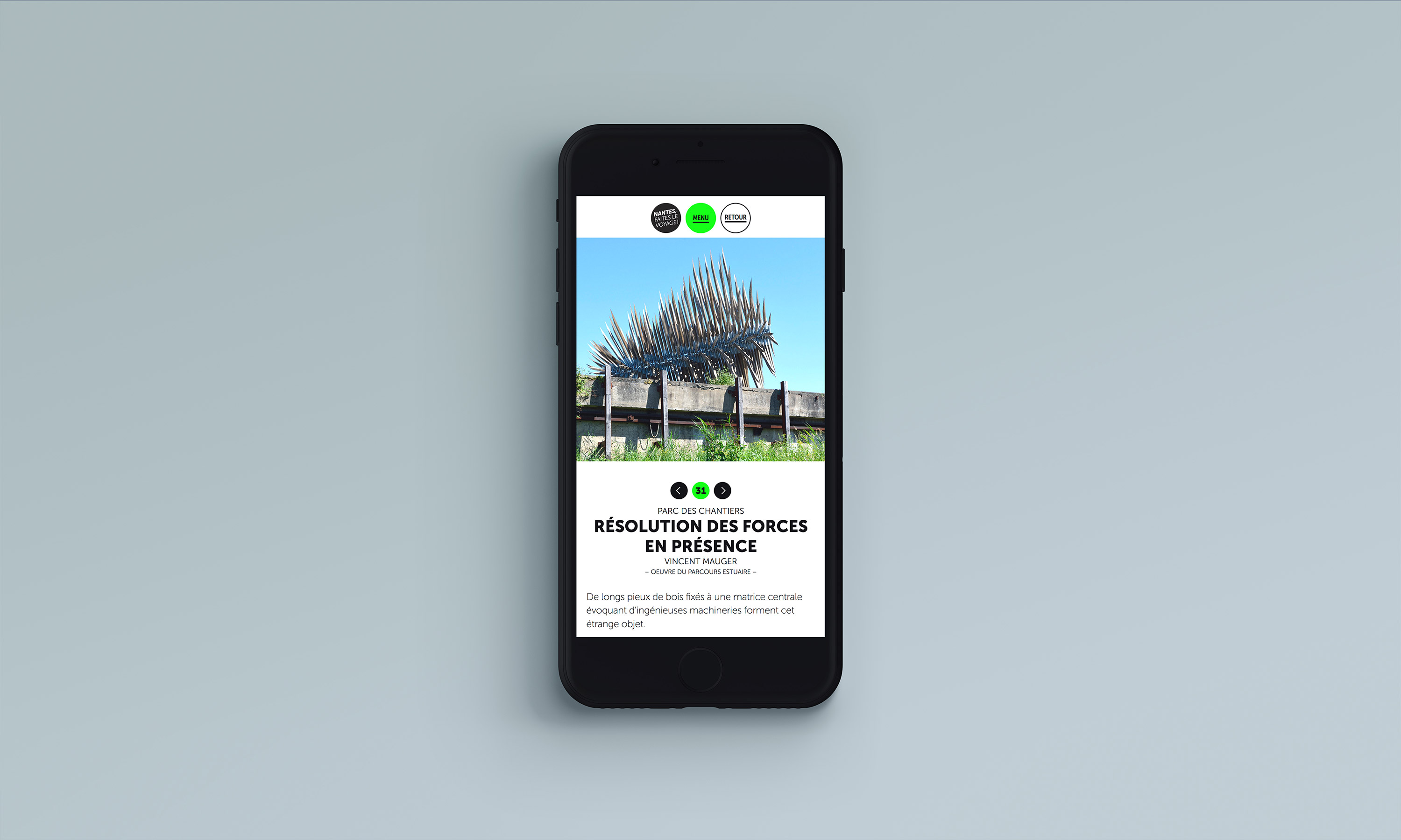 Le site est conçu autour de cette notion de parcours : un système de navigation transversal permet soit de suivre le parcours proposé, soit de se laisser séduire par les visuels des installations.
