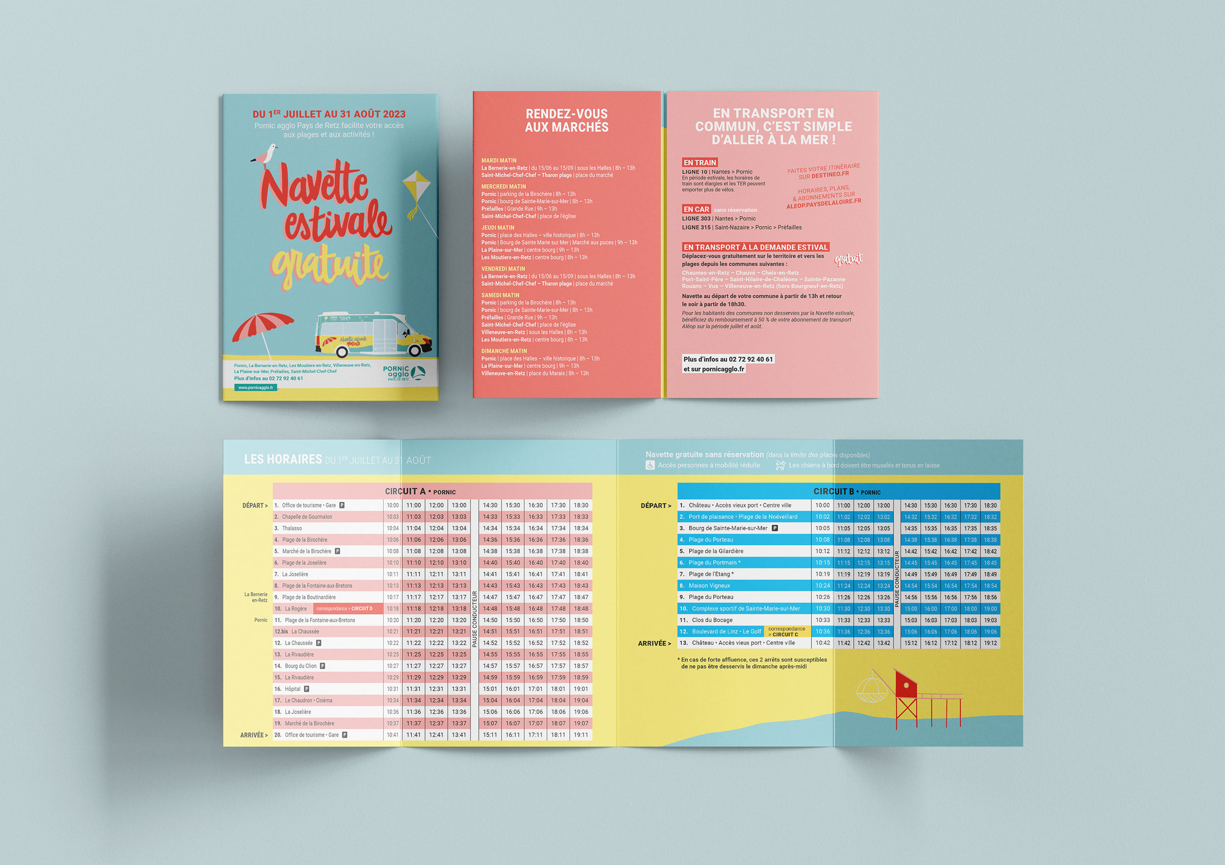 Depuis 2018, ce service remporte un franc succès et l’offre s’étend chaque année. Aujourd’hui, 7 circuits traversent le territoire avec des navettes aux couleurs acidulées et estivales !