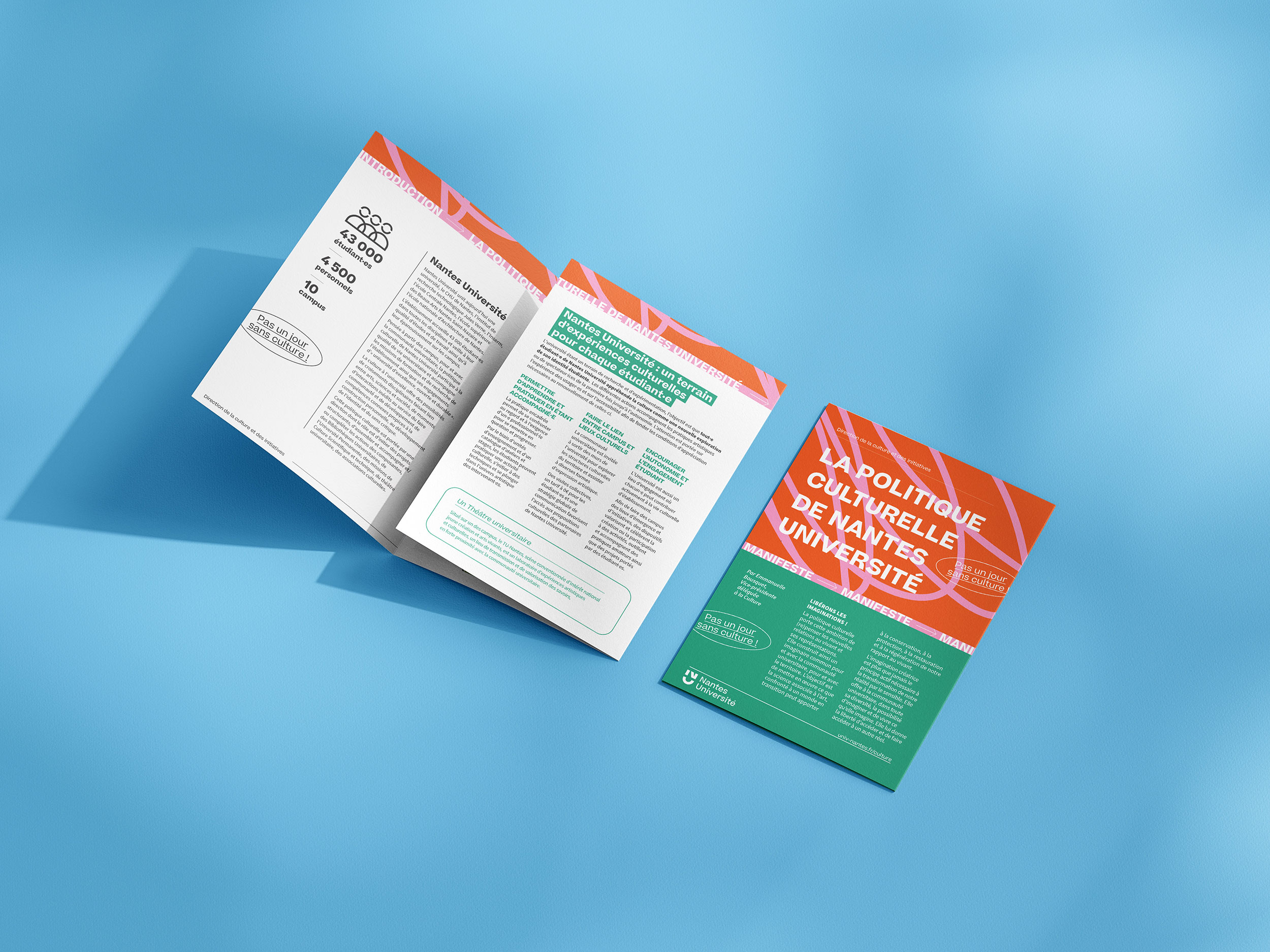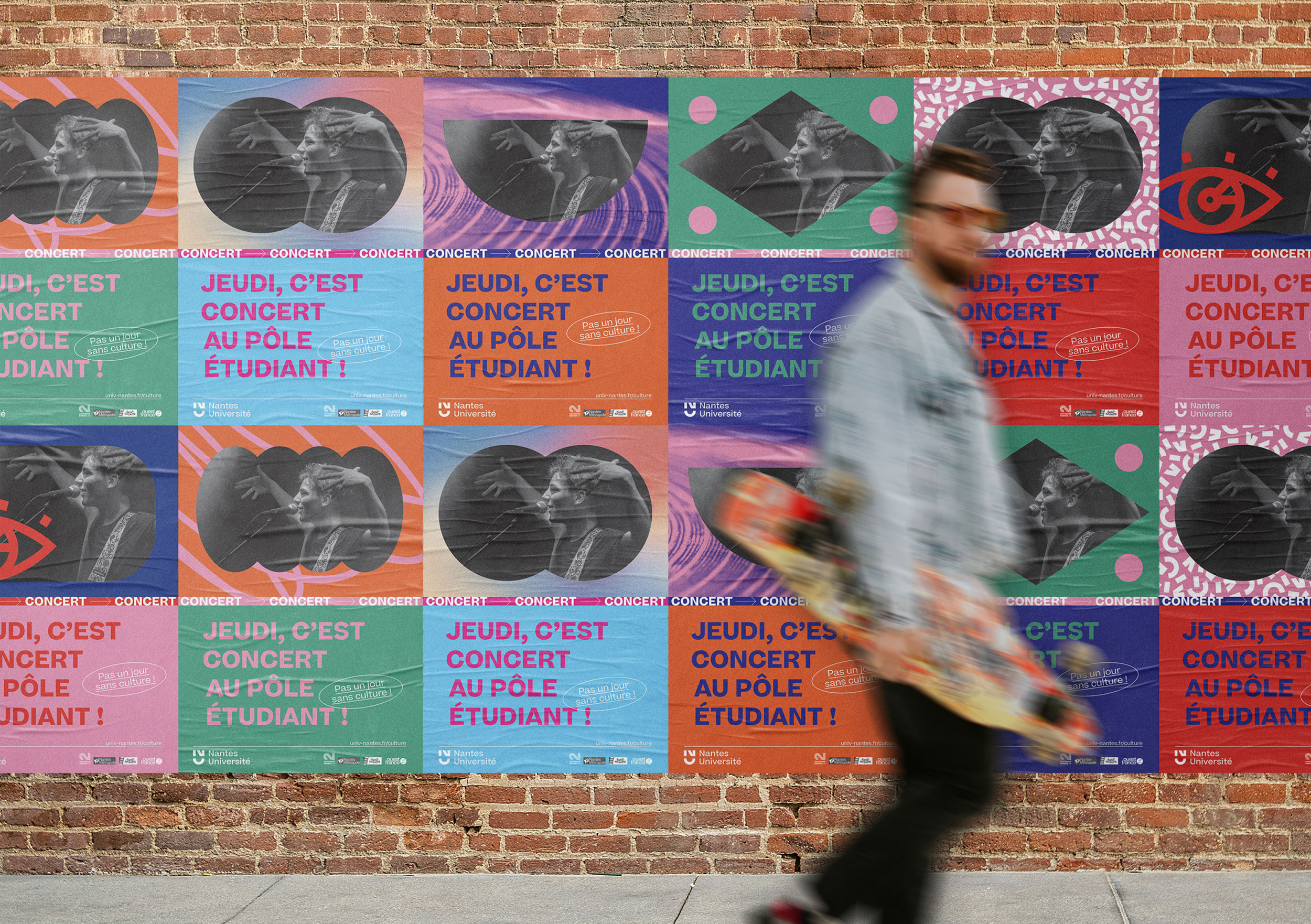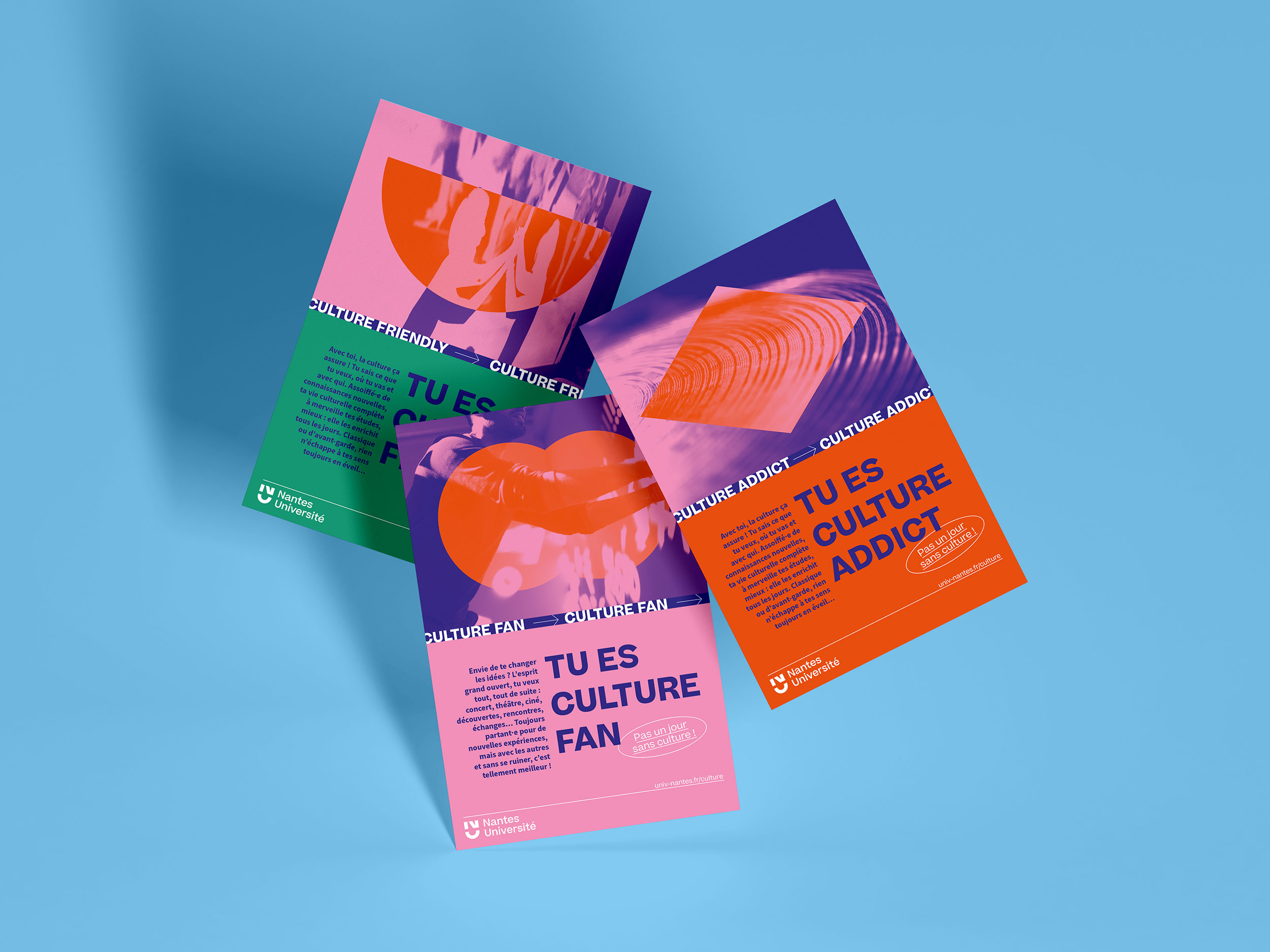 En 2022 Anima créait la campagne de rentrée « Pas un jour sans culture » pour la Direction de la culture et des initiatives de Nantes Université. Deux ans plus tard, ce slogan s’impose comme un manifeste et devient LA signature culture de Nantes Université. Anima a donc été missionnée pour créer l’identité visuelle « culture » autour de cette nouvelle signature.