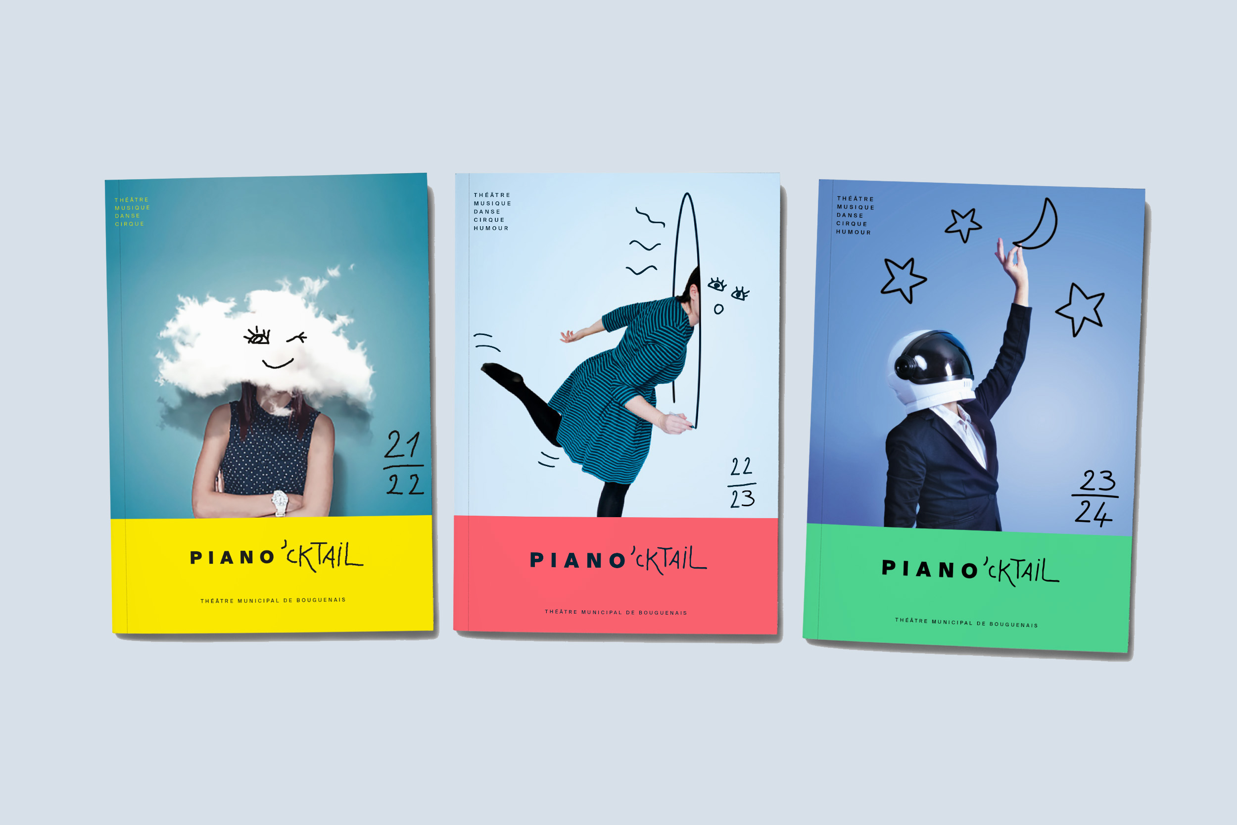 Pour la saison 2021-2022, l’agence a donc proposé un visuel léger et humoristique, qui reflète les valeurs du Piano’cktail : la curiosité, l’originalité, la modernité, la familiarité ou encore l’accessibilité. Les visages dessinés à main levée transmettent des émotions, ils apportent de l’humain (le spectacle vivant). Un visuel de saison à la fois poétique et onirique…